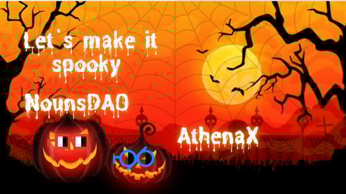 A storyline gif explaining Athena X and NounsDAO, searching Athena X and nouns protocol